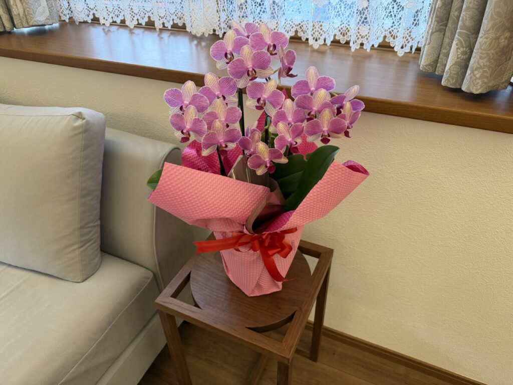 駐車場もお借りしていた、ご近所のお客様からのお花