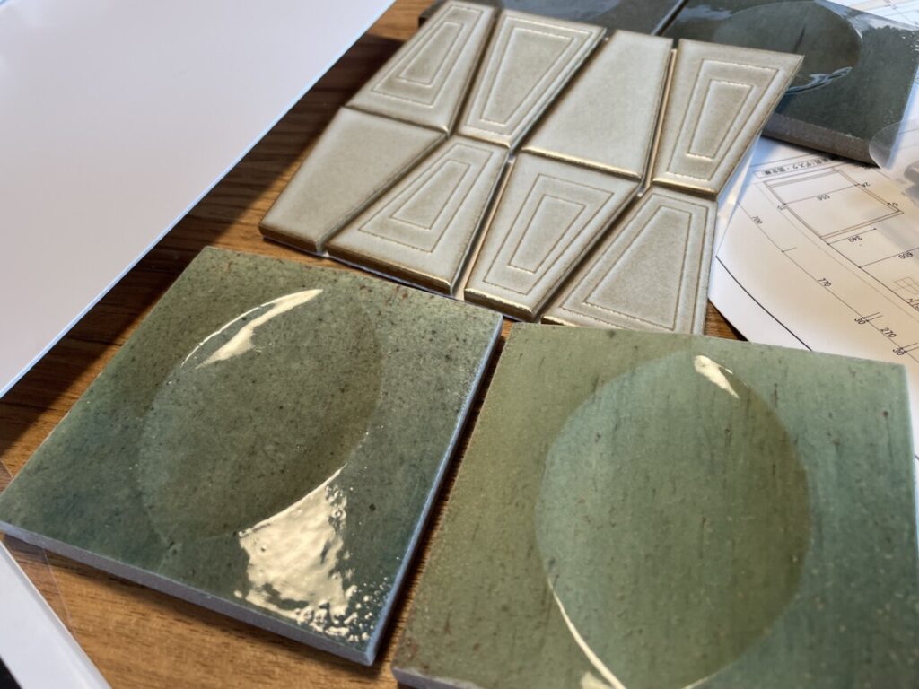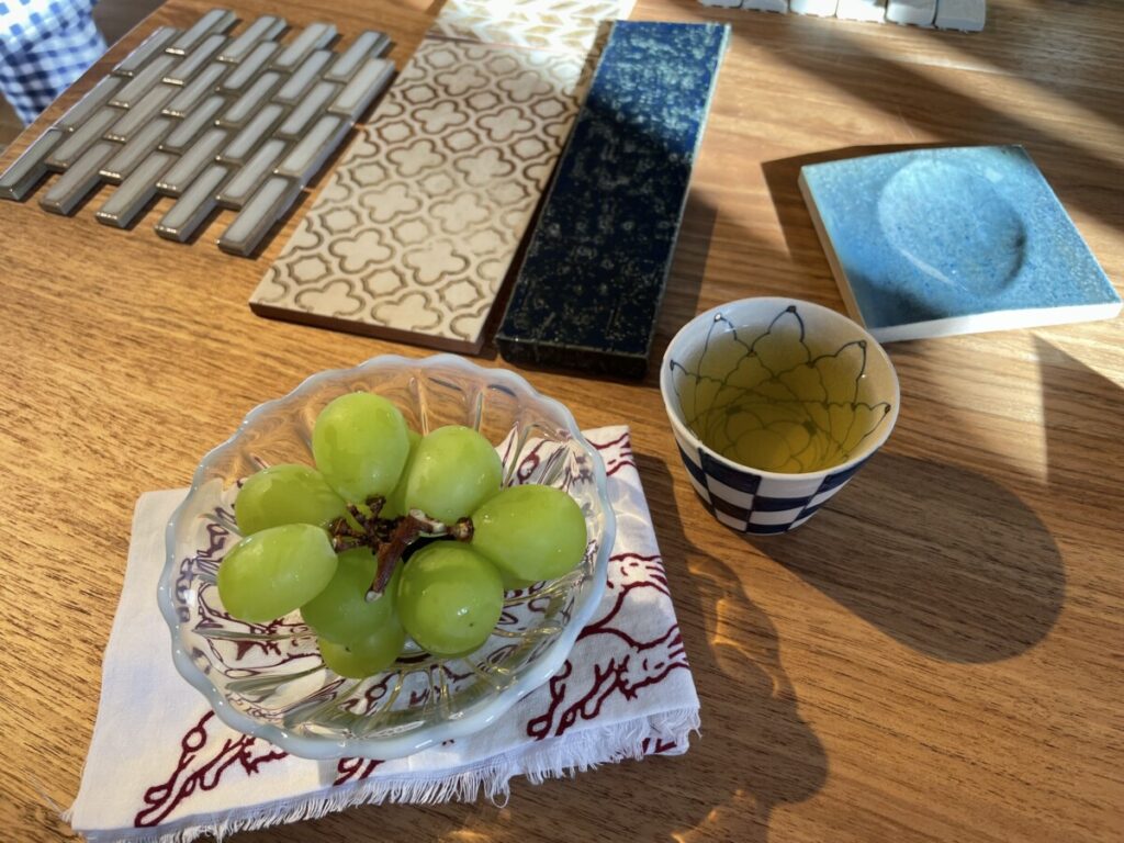 素敵な器で美味しいお茶を頂きながら、モザイクタイルのサンプルを