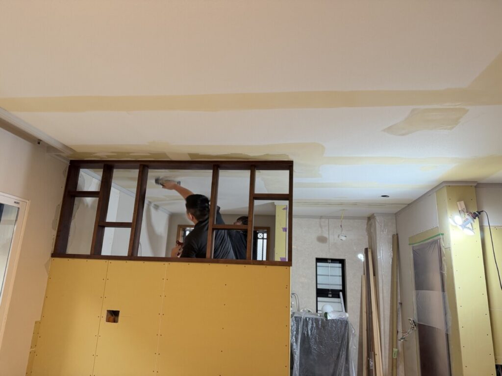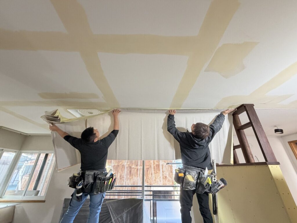 天井のクロス仕上げの下地をして・・・