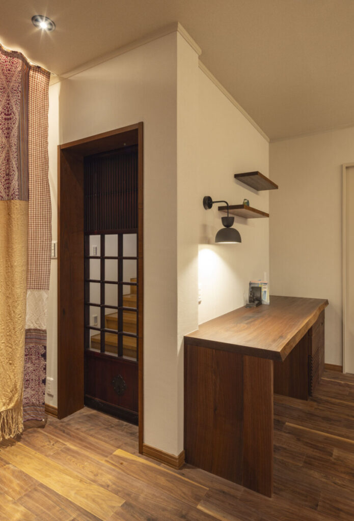 蔵戸やウォールナットのデスクコーナーも完成しました。