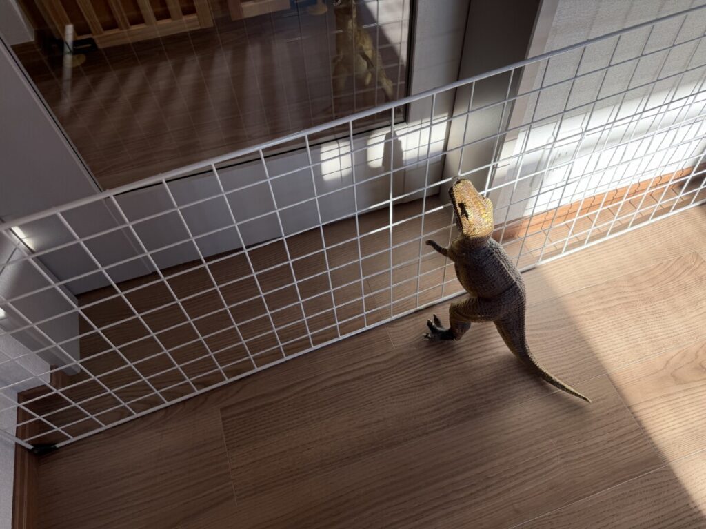 恐竜の柵で通せんぼされた猫ちゃん達が・・・??