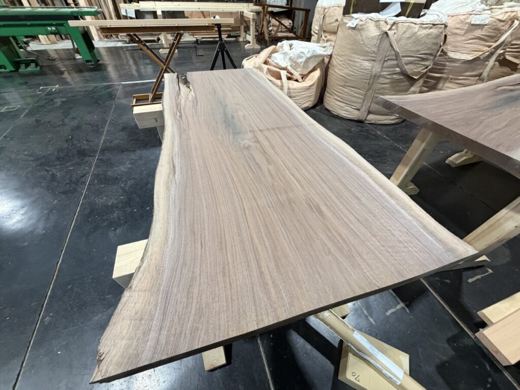 美しい木目の両耳のダイニングテーブルを作成中です。