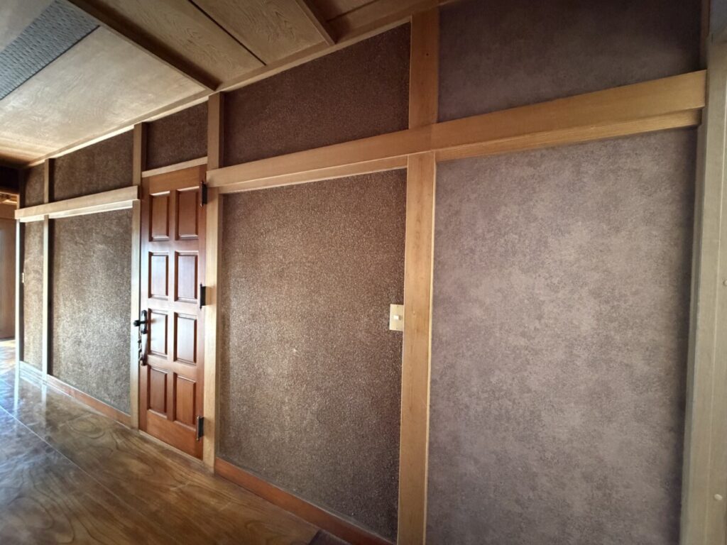 廊下の既存の左官仕上げに合わせたクロスも違和感なく仕上がりました。