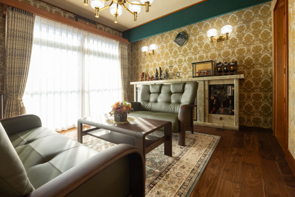 今までは、絨毯敷の応接間は、壁や天井はそのままにして