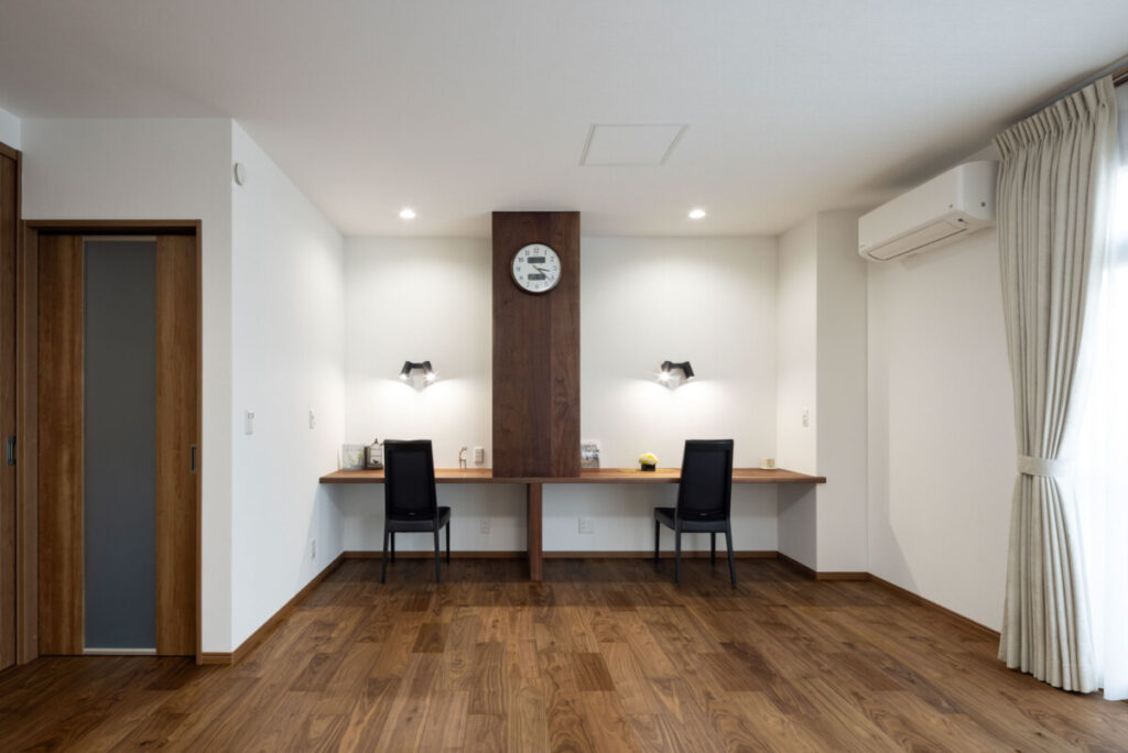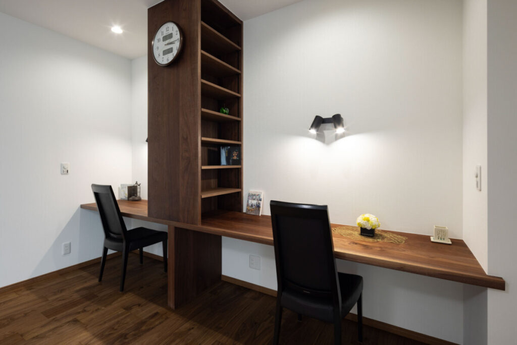 ご夫妻の書斎コーナーは、大きな書棚付きです。
