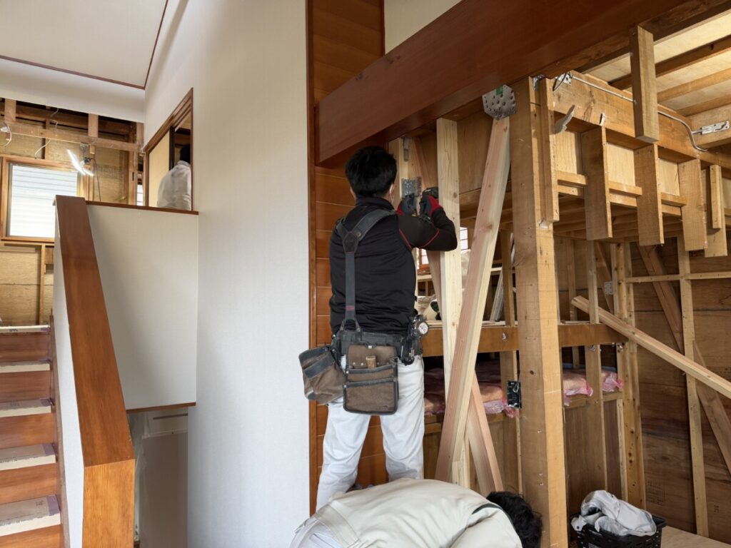 筋交いを入れたり、和室の納まりを検討したり・・・