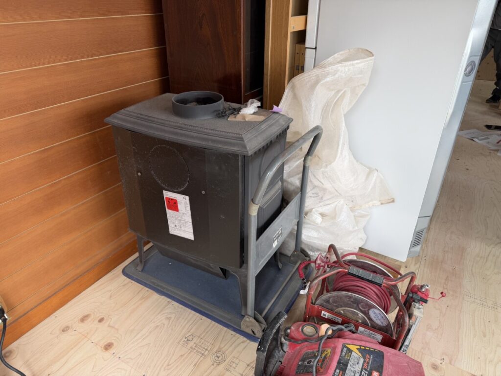 重たい薪ストーブを移動したり・・・