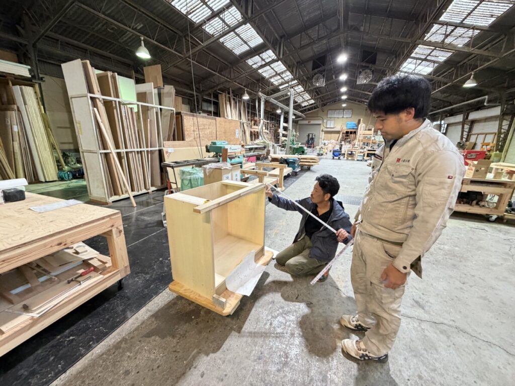 加工場では、手洗いカウンターの製作が始まっていて・・・