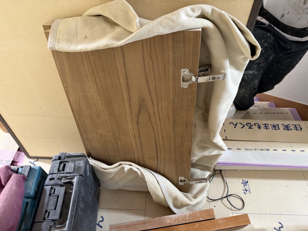 チークの扉を設置して、塗装します。