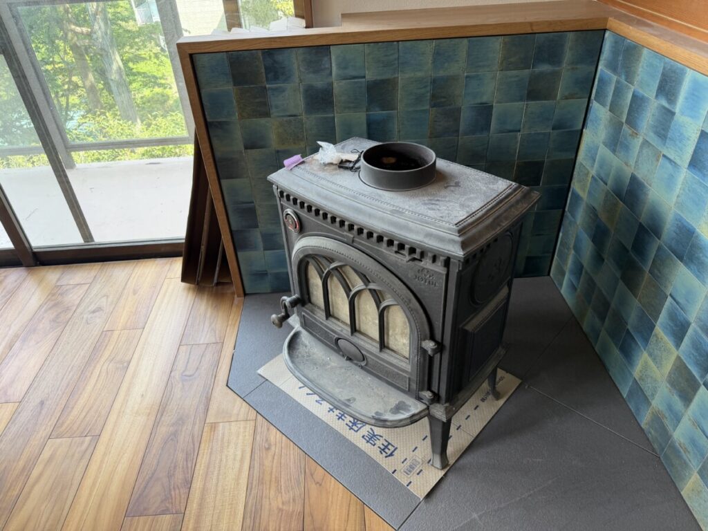 薪ストーブのタイルも完成です。