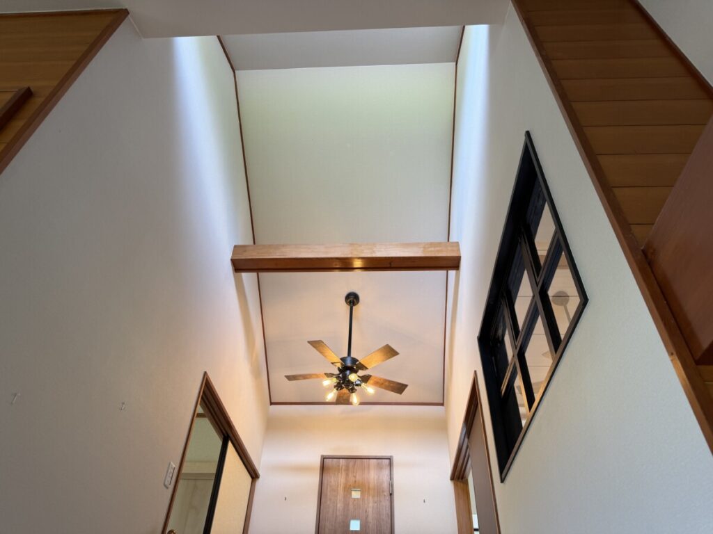 シーリングファンと室内窓も設置しました。