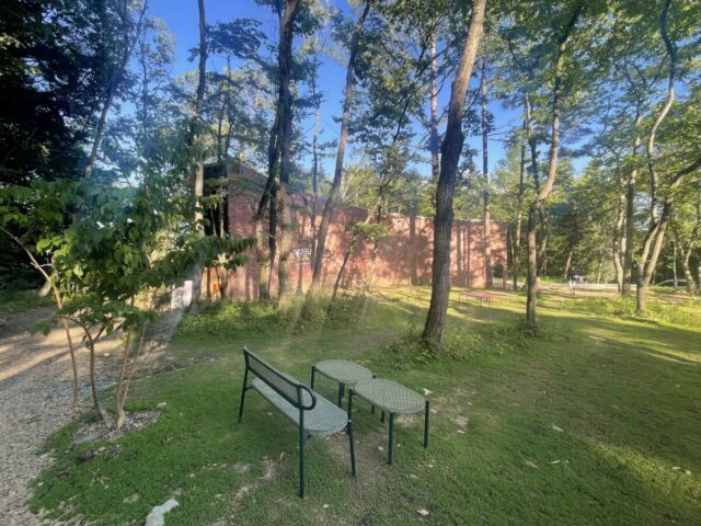 中に入ってみると、傾斜地にカフェ席があり・・・