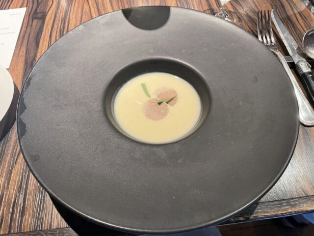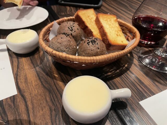 鮎のパテ入りのヴィシソワーズに焼きたてパン・・・