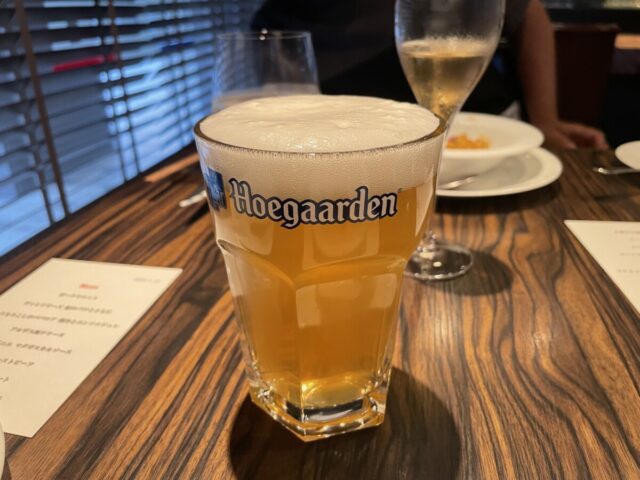 トウモロコシのババロアに雲丹のジュレの前菜とドイツbeer・・・
