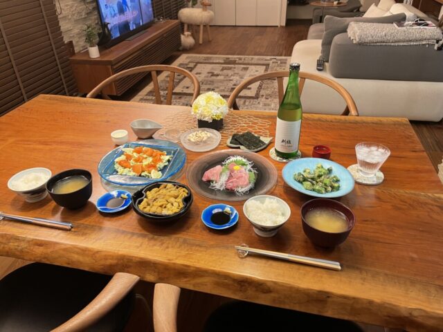 夕食は、魚介に日本酒♡
