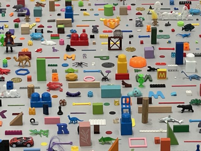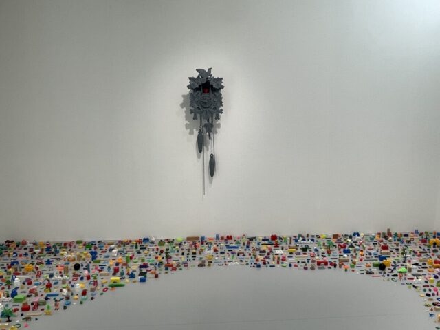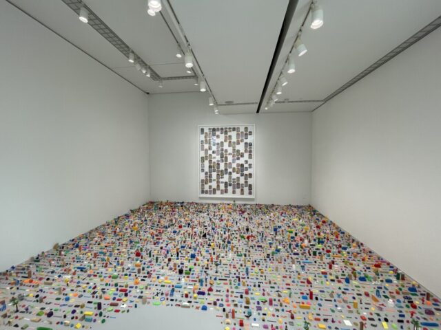 小さな小さな作品が並べられた、奥行き感を感じるアートです。