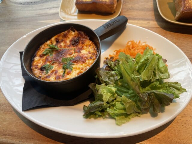 ブリオッシュ・フレンチトーストとスキレットのあつあつのランチメニュー。