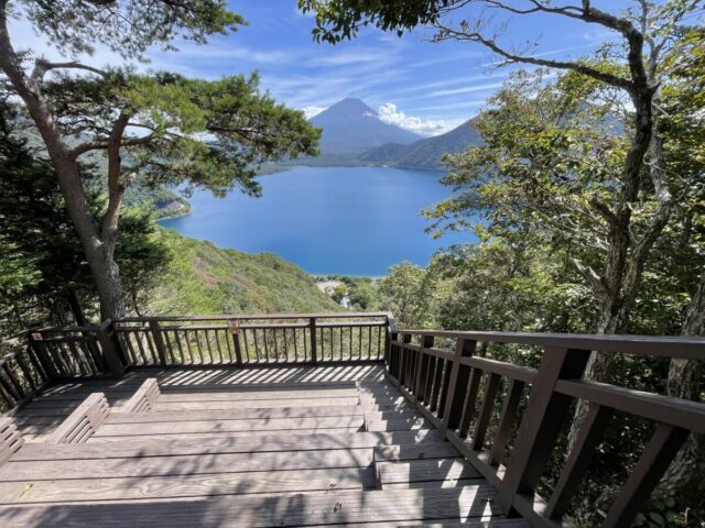 ブルーの空にブルーの本栖湖を眺めながらの山歩きです。