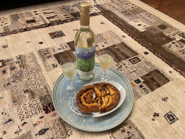映画&スポーツクラブの後に、先ずはワインとデニッシュパン。
