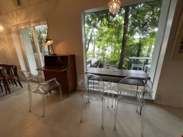 内部の席からテラスを眺めることにしました。