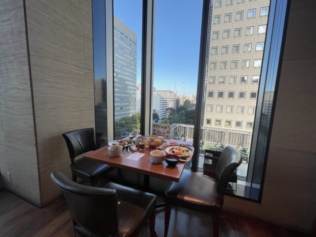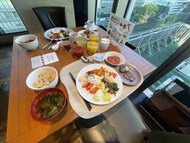 バイキング形式の朝食も、高層階の眺めを楽しみながら・・・