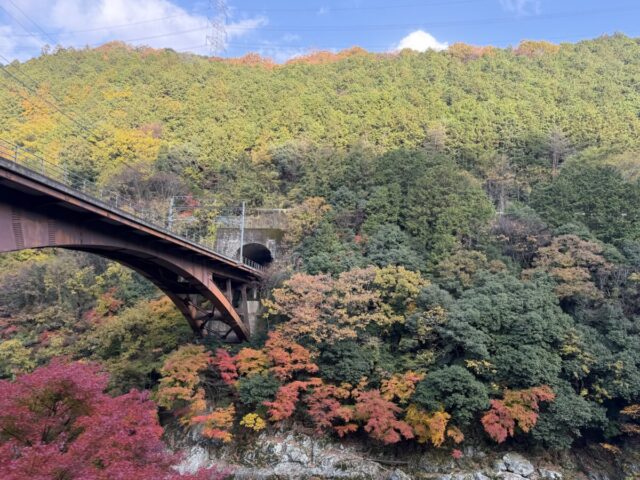 京都 嵯峨野トロッコ列車の紅葉