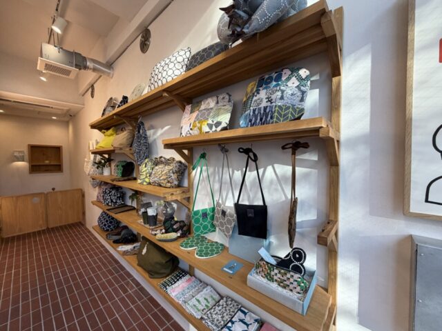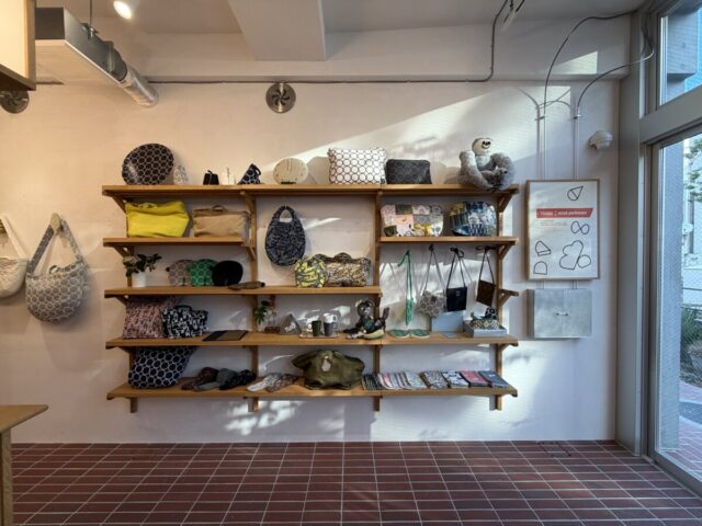 布製のバッグや小物など、キュートな物が並び・・・