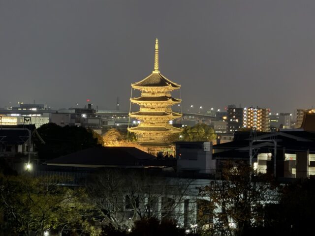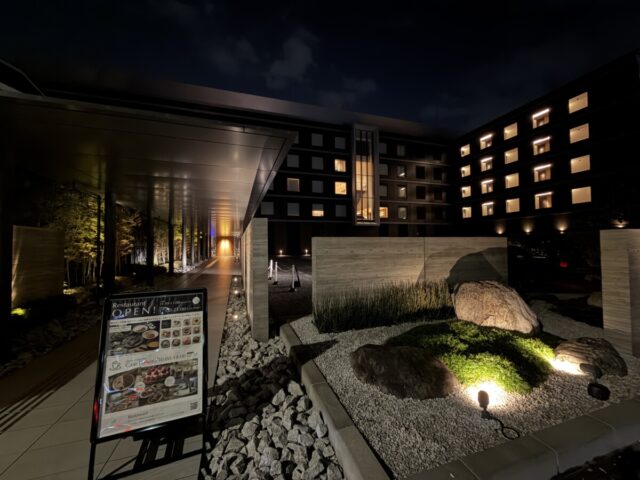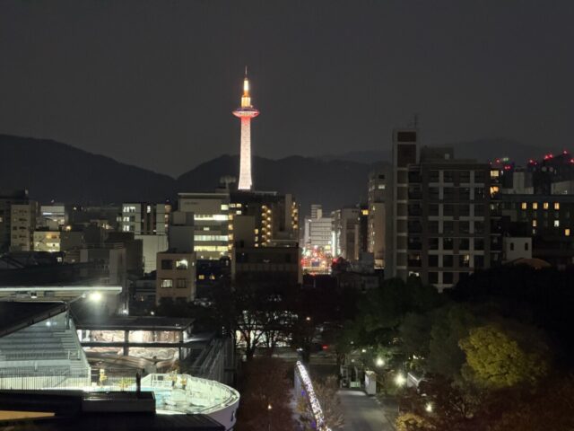 京都の休日の滞在先のUmekouji Potel KYOTO の夜のインテリアを