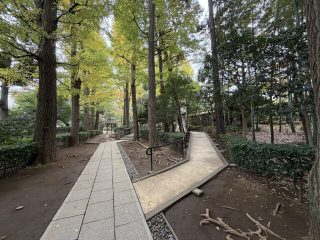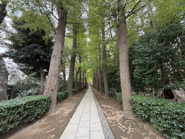 樹齢100年の銀杏の木が続いて、広大な庭園に