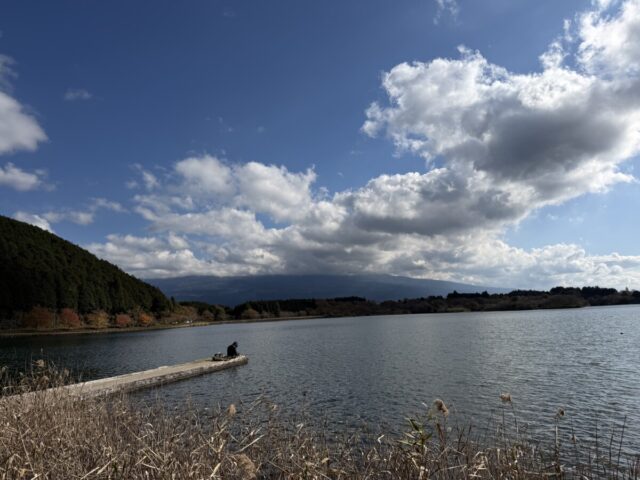 帰りは、湖畔まで駆け下りて、湖の周りを散歩しました。