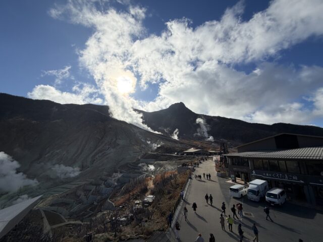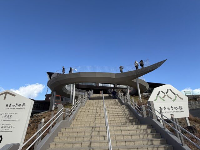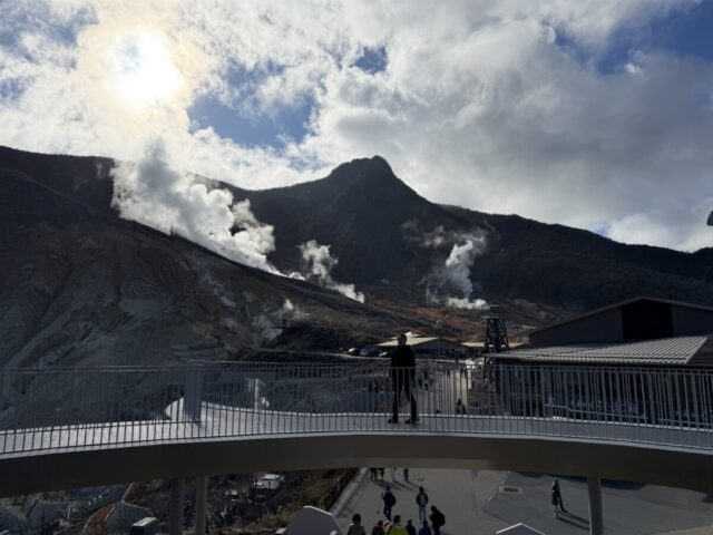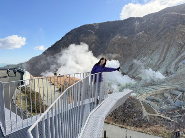 昨年オープンした箱根大涌谷の展望エリア「ちきゅうの谷」へ