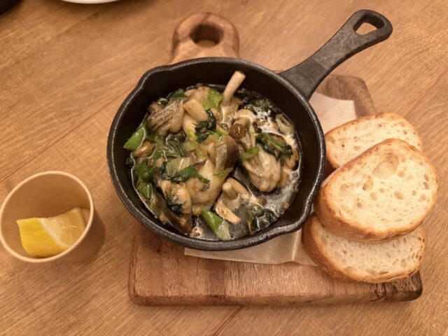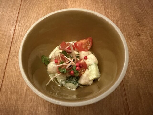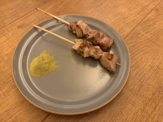 スパークリングをお願いすると、直ぐに前菜や串焼きが来て