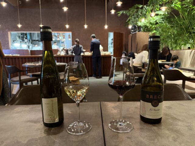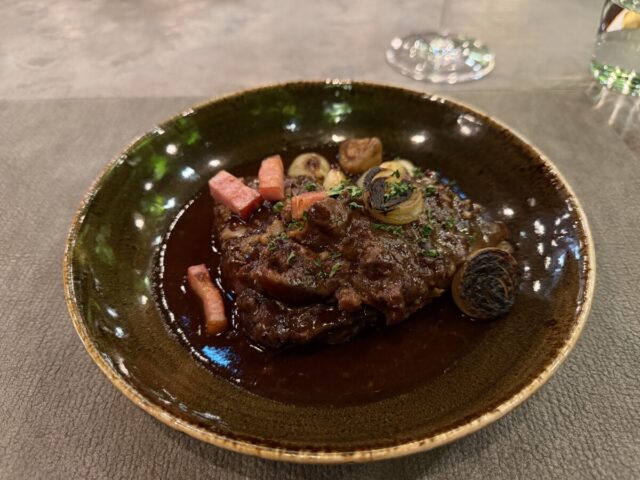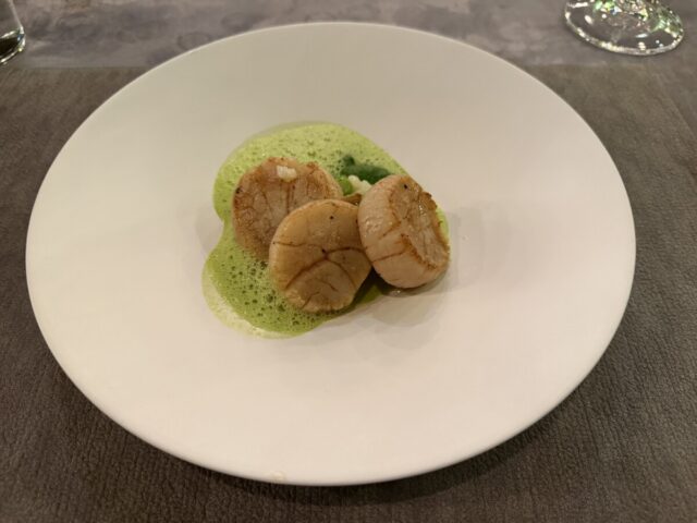 赤ワインと白ワインをお願いして、牛の煮込みとホタテのグリル・・・