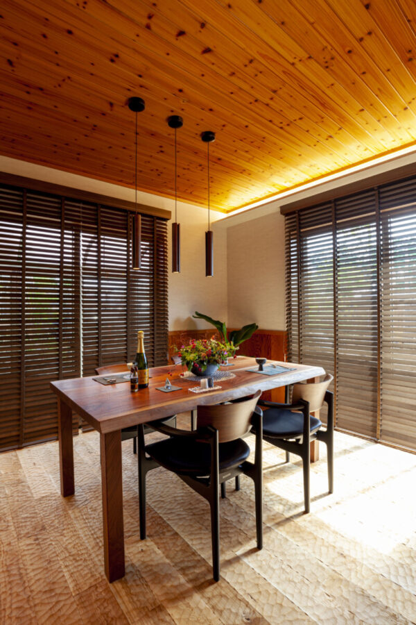既存の木の天井を残したまま、床をスプーンカット加工の床にしました。