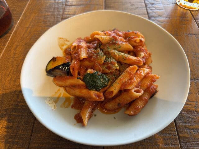 アツアツのラザニアにトマトソースのパスタを頂きました。