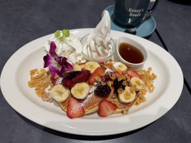 パンケーキをフルーツタップリで頂いて、ストレス解消をしていました。