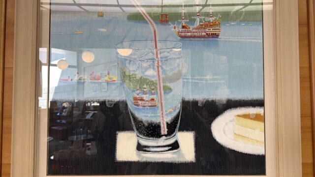 併設の絶景カフェで過ごす絵画も展示されています。