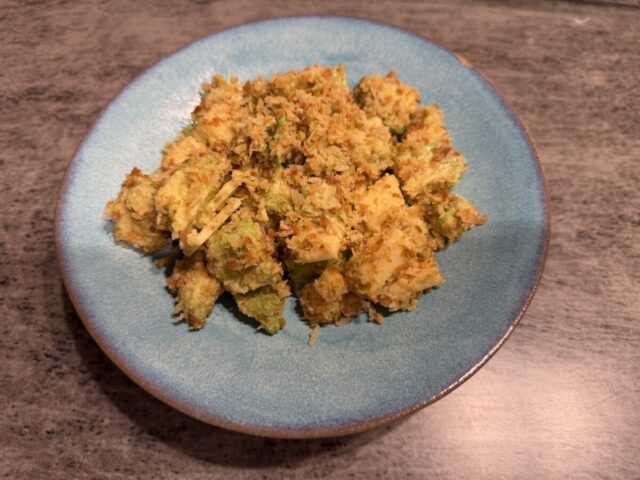 こちらは、フライパンでパン粉を炒めたものをアボカドに