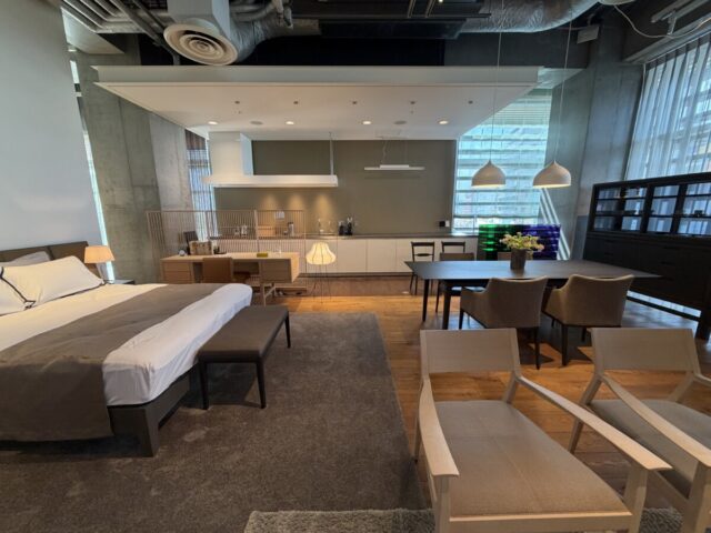 ゆったりとした空間に、照明と家具がバランスよく配置されていて・・・