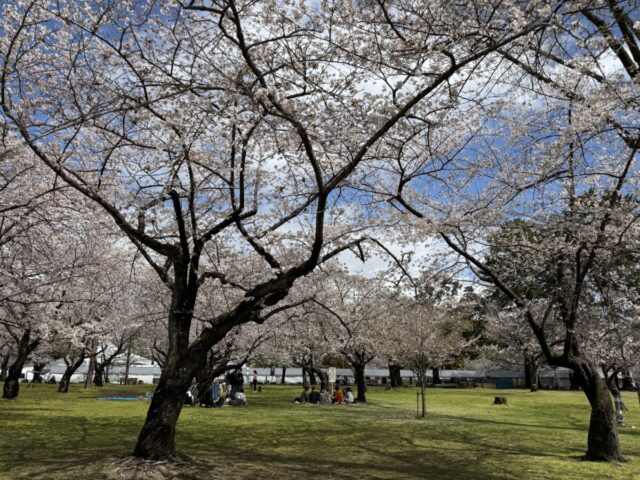 グリーンの芝生の上を歩きながら、お花見が出来ました。